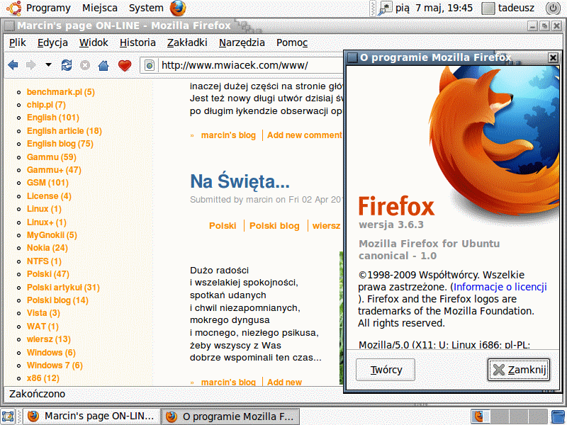 SprzętOstatnio w Sieci pojawił się artykuł Is Windows 7 Actually Faster Than Ubuntu 10.04? (po angielsku), który próbuje porównać sterowniki Intela, Nvidii i ATI z tymi dla Windows 7. Nie wypada to najlepiej dla tego Linuxa, niemniej jednak moim zdaniem pokazuje, iż ta dystrybucja nie jest całkiem "osierocona". Ja na karcie zintegrowanej Intela miałem inny problem - jak uruchomić akcelerację 3D z "zamkniętymi" sterownikami Intela ? Brak było zbioru konfiguracyjnego X.Org oraz narzędzia. Należało "tylko" zalogować się do konsoli, zatrzymać interfejs graficzny ("sudo service gdm stop"), użyć komendy "sudo Xorg -configure", w sekcji "Device" zamienić sterownik z "vesa" na "intel", dodać wpisy do sekcji "Monitor" wygenerowane np. przez komendę "gtf" i uaktywnić je w sekcji "Screen". Moim zdaniem troszkę przerażające dla przeciętnego użytkownika... Inne podstawowe dzisiaj urządzenia (myszki, pendrive, Bluetooth, itp.) działały oczywiście bez problemu. Bez niczego (ale też bez dodatkowych efektów jak Windows) mogłem również słuchać dźwięku z karty dźwiękowej X-Fi Go!. Jeśli chodzi o partycje - brak jest wsparcia dla exFAT (nowy system plików Microsoftu, który w Viście i XP wymaga doinstalowania dodatków). Z kolei na partycjach NTFS rozpoznawane i tworzone były poprawnie różnego rodzaju odnośniki, jest również dostępna obsługa alternatywnych strumieni (przez komendę "getfattr"). Z dużych plusów - poprawnie działa hibernacja. Inne dystrybucje LinuxaNie chciałem spędzić zbyt dużo czasu i wysiłku na konfigurację całości. W podobnej konfiguracji próbowałem również Mandrivę (również z Gnome). Tam na początku były problemy z obrazem (migoczący obraz), problem z Flashem (podobno pojawił się wraz z FireFoxem 3.6.3), ale później non-stop pracujący dysk praktycznie uniemożliwiał zrobienie czegokolwiek... Do tego ta komercja (dosyć nachalne próby przekonania do zakupu płatnych kodeków, itd. itd.). Był również Debian. Tutaj z kolei przeciętnego użytkownika będzie odstraszać "archaiczność" podstawowych aplikacji i pewne problemy z pobieraniem ich najnowszych wersji. Ta dystrybucja po prostu stawia na sprawdzone rozwiązania, a nie testowanie nowości na użytkownikach. Innych nie sprawdzałem po skosztowaniu Ubuntu, nie używałem także innych środowisk graficznych celowo poprzestając tylko na wspomnianych dwóch najpopularniejszych. PodsumowanieWiele lat temu różni ludzie stworzyli zasady tworzenia obecnych systemów operacyjnych, z których mniej lub bardziej korzysta Windows lub praktycznie wszystkie rozwiązania unixopodobne (do których zalicza się Ubuntu). Niektóre z nich traktowałbym trochę jako nonsensy, które mogłyby już przejść do lamusa. Ot chociażby konieczność "instalowania" różnych aplikacji i totalne współdzielenie przez nie różnych katalogów i plików. Albo fakt, iż sterowniki do praktycznie dowolnych urządzeń mogą skutecznie zawiesić komputer (wykorzystywana jest bowiem architektura monolityczna jądra). Jeżeli więc oczekujesz takich "cudów" jak automatyczne restartowanie się sterowników w przypadku błędu (jak np. w Minixie 3), Ubuntu na pewno nie będzie dla Ciebie. Daje się zauważyć brak wsparcia dla różnych rozwiązań własnościowych (np. systemów plików). Trzeba napisać tutaj wyraźnie, iż nie jest to wina twórców, ale bardziej różnych firm, które z uporem maniaka je wprowadzają. Kolejną bolączką testowanego systemu jest (paradoksalnie) klęska urodzaju - nie udało się w 100% "bezboleśnie" połączyć np. różnych środowisk graficznych, również nie wszystkie aplikacje są w 100% przyjazne (chociażby instalator, który mógłby pozwolić na ustawienie wszystkich parameterów i później przeprowadzać całą instalację całkowicie bez ingerencji użytkownika). Krytykuję to tutaj, ale chcę też wyraźnie zaznaczyć, iż moim zdaniem Ubuntu 10.04 dla przeciętnego zjadacza chleba przyzwyczajonego do interfejsu Windows XP będzie mieć obecnie podobną ilość problemów tego typu jak Windows 7. Przechodząc jakby poziom wyżej - mam pewne wątpliwości co do przyszłego rozwoju najpopularniejszego środowiska KDE i działań firmy Nokia względem Linuxa (szczególnie z uwagi na sposób, w jaki zostali potraktowani np. użytkownicy modelu N900, ale nie tylko), niemniej jednak do 2014 roku (moment, w których przestanie być wspierany Windows XP) jest jeszcze dłuższa chwila i można różne rzeczy zmienić "na plus" (a wtedy Microsoft naprawdę będzie mieć powody do obaw). Gdzie można się spodziewać jeszcze POTENCJALNYCH problemów ? Widziałbym je tam, gdzie nie zaglądałem i gdzie nie sprawdziłem jakości danego rozwiązania. Mówię np. o Wine, VmWare oraz sterownikach do akcelerometrów chroniących klasyczne dyski twarde w urządzeniach przenośnych (takich jak w rozwiązaniu HP 3D DriveGuard). Z pozytywów wskazałbym rozsądne wymagania sprzętowe (ok. 3,5GB dysku w wersji z Gnome+KDE, 256 lub od razu lepiej 512MB RAM). Dla kogo więc ta dystrybucja Linuxa jest odpowiednia ? Jeśli nie widzisz świata poza Windows, Ubuntu nie będzie dla Ciebie. Po prostu zabraknie Ci instalowania antywirusa, konfigurowania firewalla, szukania "sztuczek" w Rejestrze, itp. Z kolei typowe potrzeby (Internet, poczta, komunikator, od czasu do czasu jakiś dokument, itp.) na pełno zostaną w pełni zaspokojone. Są tylko cztery warunki: