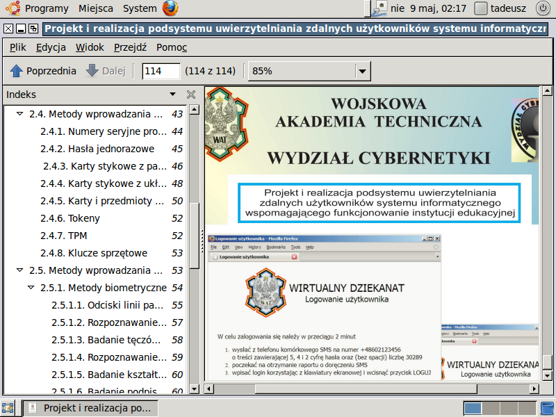 Przeprowadziłem kilka testów - chciałem np. obejrzeć sobie pliki PDF. System proponuje standardowo aplikację "Document Viewer". Otworzyłem sobie w niej chociażby moją pracę dyplomową (pokazane zostało to niżej). Formatowanie, obrazki, itp. elementy były zachowane, brakowało jedynie załączonego w zbiorze archiwum.