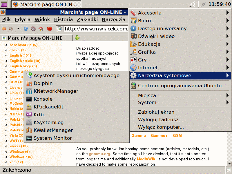 W tej konfiguracji KDE niestety zaczęło "rządzić" np. ustawieniami fontów różnych aplikacji, w Gnome zabrakło np. wpisów do konfiguratora KDE...