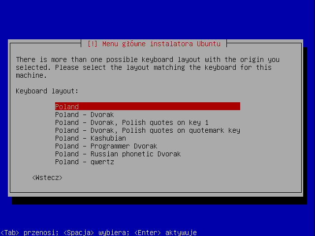 Potem pojawia się już instalator tekstowy znany chociażby z Debiana (niewątpliwie wygląda to archaicznie, ale z drugiej strony brak grafiki pomógł w zmniejszeniu wielkości płyty). Wpierw wybieramy język, a później klawiaturę: