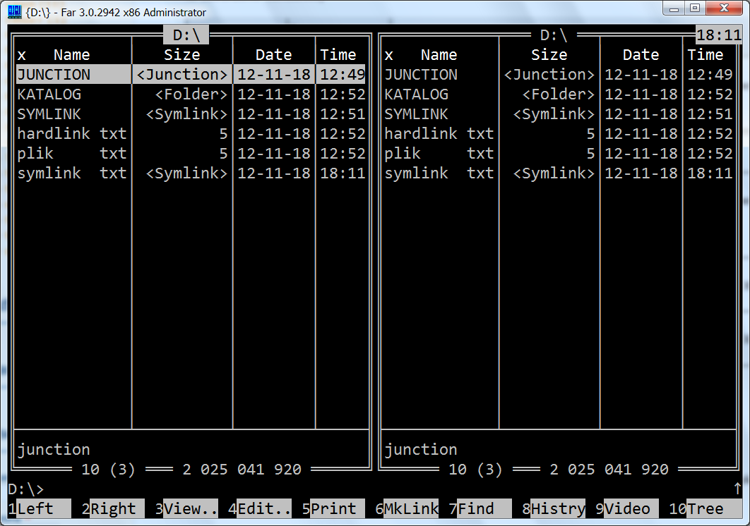 Nie jest problemem wejście do katalogów takich jak „Documents and Settings” czy „Users\Default User” (FAR jest aplikacją win32 i potrafi obsługiwać różnego rodzaju linki na partycjach NTFS oraz różne funkcje Windows NT).
